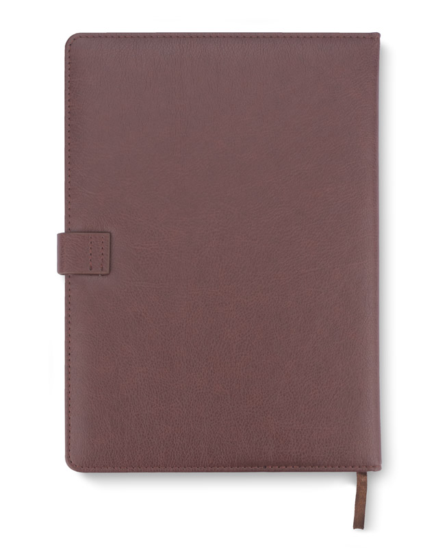 Notes IDELO o klasycznej, dopracowanej formie, z okładką z materiału skóropodobnego (PU) i paskiem zamykanym na magnes.