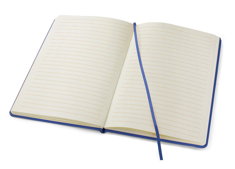Gustowny notes A5 z kolorową gumką wykonany z materiału skóropodobnego (PU).