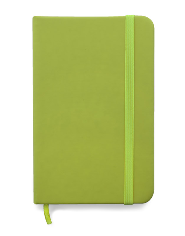 Gustowny notes A6 z kolorową gumką wykonany z materiału skóropodobnego (PU).