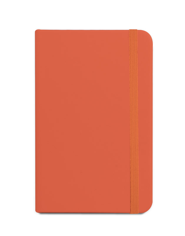 Gustowny notes A6 z kolorową gumką wykonany z materiału skóropodobnego (PU).