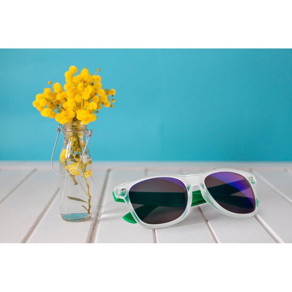 Okulary przeciwsłoneczne z filtrem UV400, posiadają lustrzane szkła i oprawki o matowym wykończeniu, produkt wykonany z PC i AC
