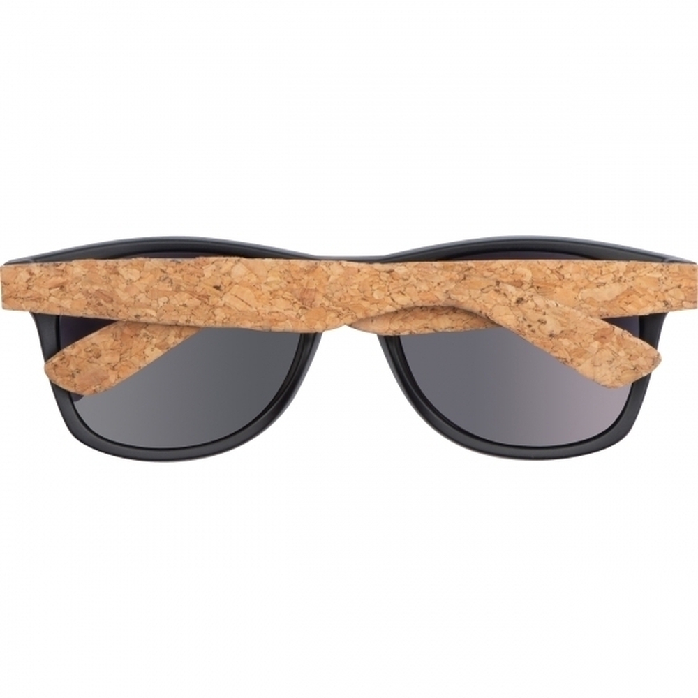 Okulary przeciwsłoneczne z korkowymi zausznikami.