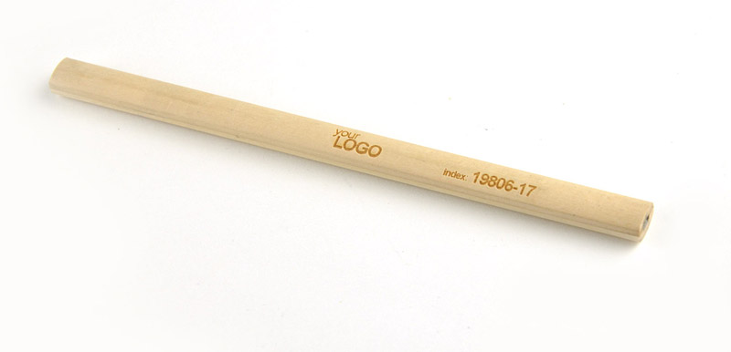 Klasyczny ołówek stolarski wykonany z drewna. Twardość rysika: F. Logo wygrawerujemy lub nadrukujemy na powierzchni ołówka.