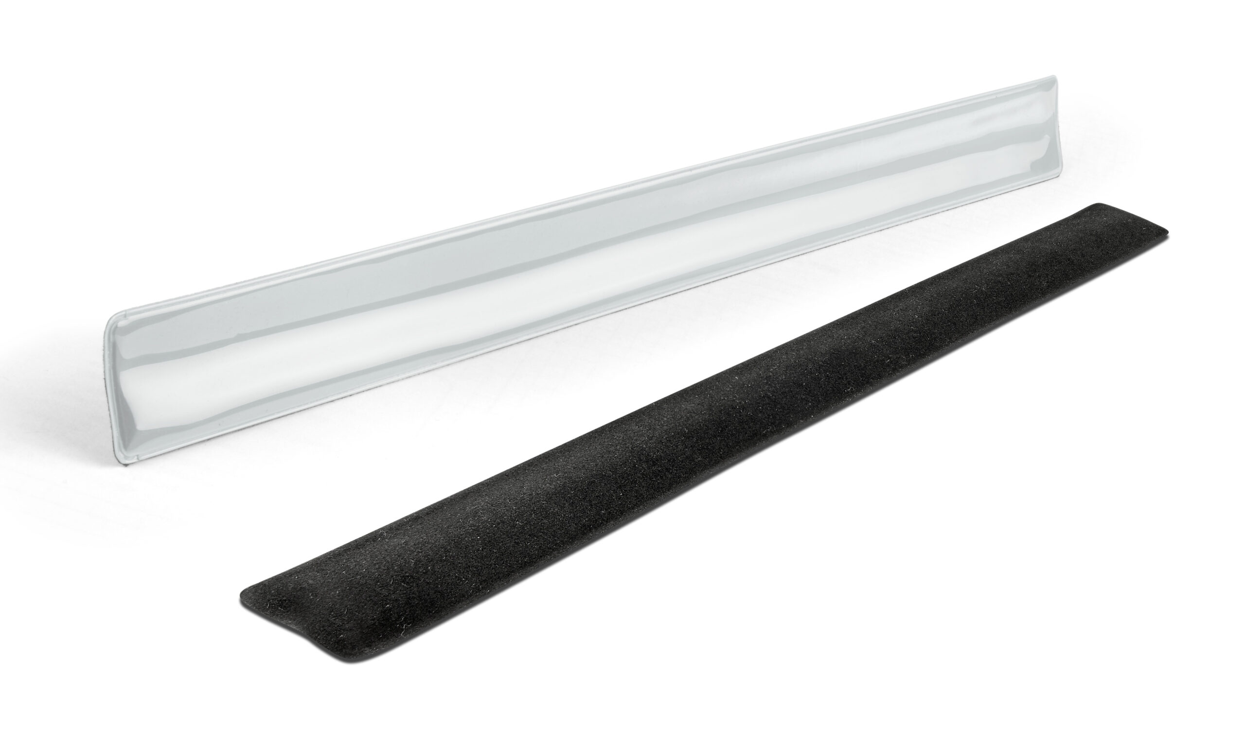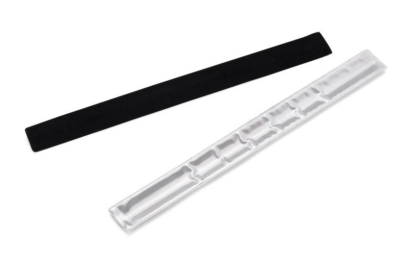 Opaska samozaciskowa BONDO to funkcjonalny gadżet z elementami o właściwościach odbijających światło, który można wygodnie założyć na ramię lub nogę.