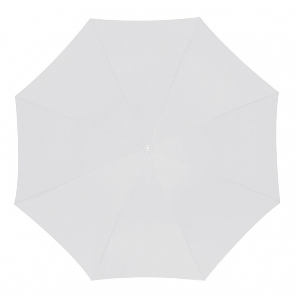 Parasol automatyczny LIMOGES wykonany z poliestru, posiada wygiętą plastikową rączkę i metalowy stelaż.