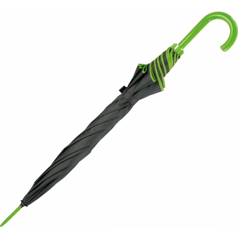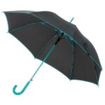Parasol automatyczny PARIS z kolorową obwódką oraz rączka w tym samym kolorze, wykonaną z plastiku, stelaż z włókna szklanego.