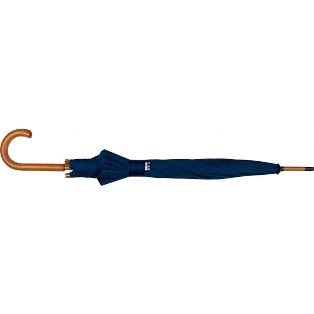 Automatyczny, wiatroodporny parasol z wykonany z włókna szklanego z zakrzywioną drewnianą rączką.