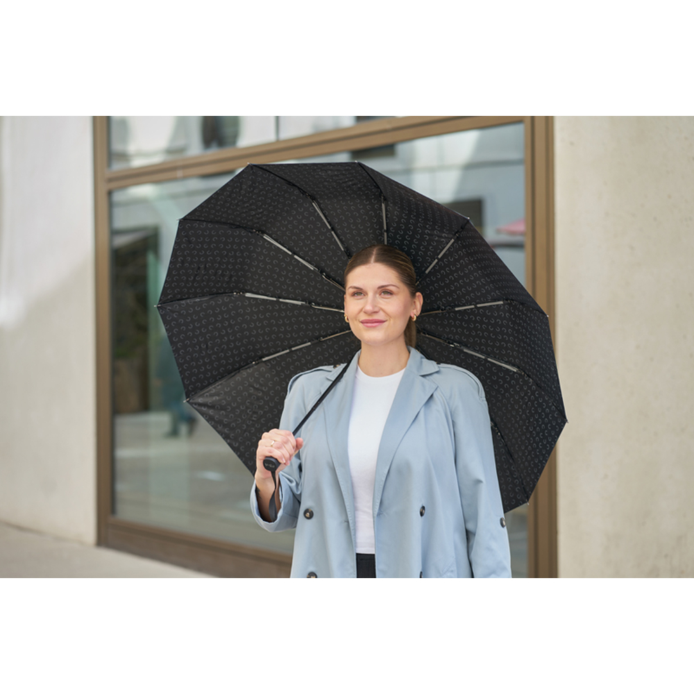 Ergonomiczny uchwyt z tworzywa ABS pochodzącego z recyklingu zapewnia pewny chwyt oraz podkreśla dbałość o środowisko. Automatyczny mechanizm otwierania umożliwia szybkie i wygodne rozłożenie parasola, co czyni go praktycznym dodatkiem na co dzień.