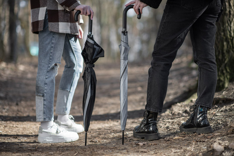 Parasol LIF jest automatycznie otwierany i posiada zakrzywioną rączkę z tworzywa imitującego skórę z eleganckim przeszyciem.