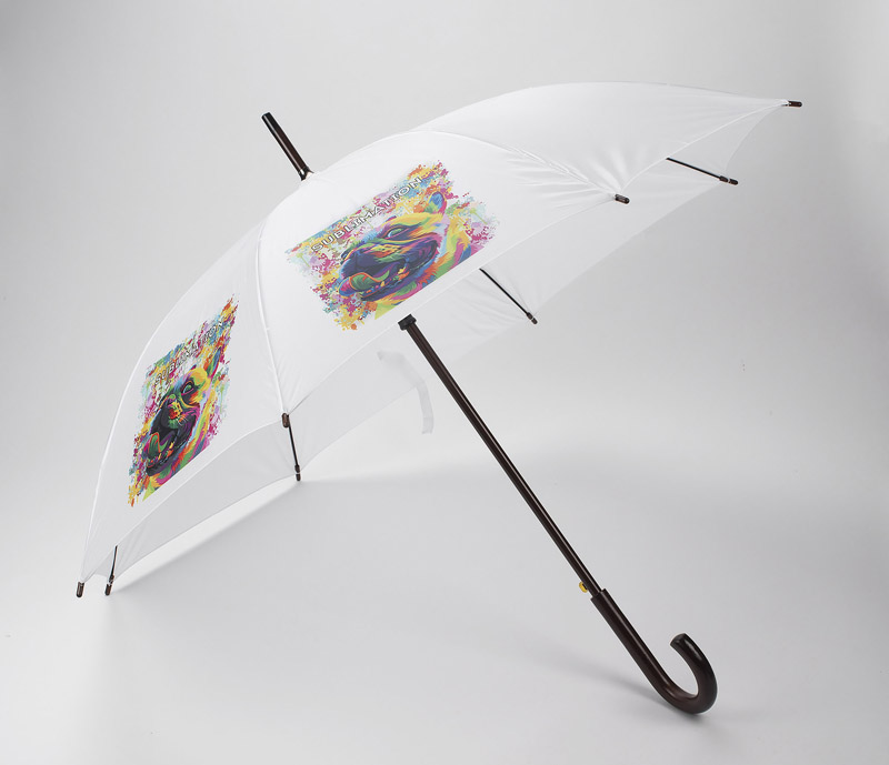 Parasol automatycznie otwierany z drewnianą zakrzywioną rączką.