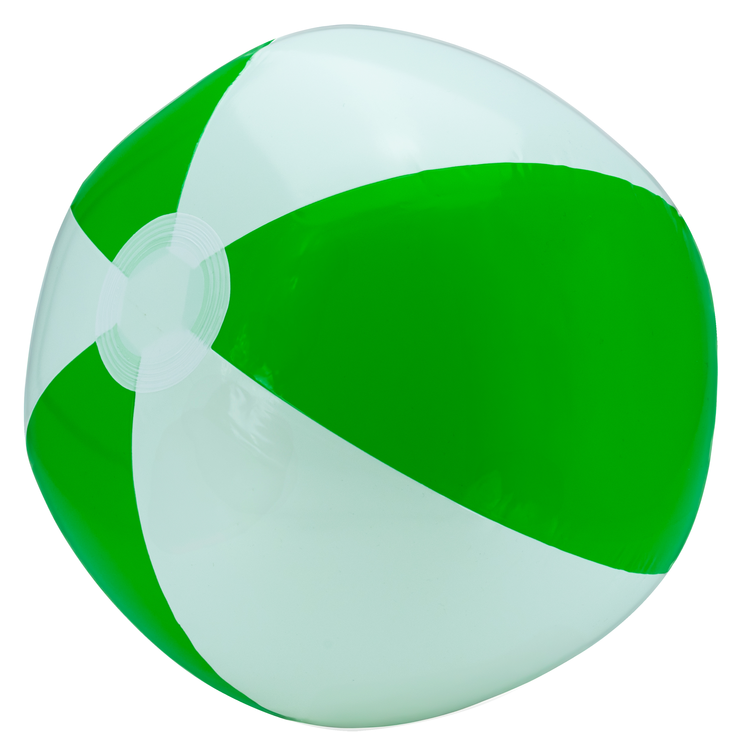 Dmuchana, dwukolorowa piłka plażowa wykonana z plastiku.