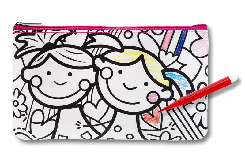Piórnik ozdobiony grafiką do samodzielnego pokolorowania.