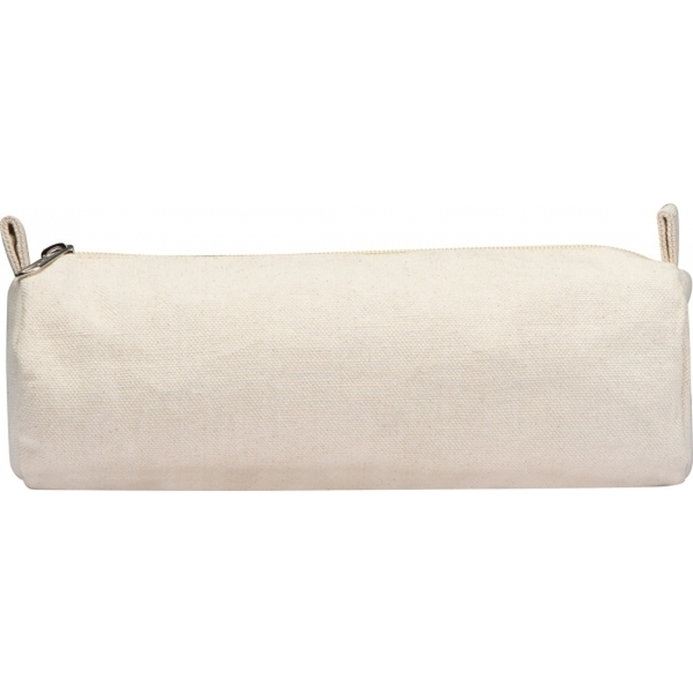 Pojemny piórnik wykonany z bawełny, zamykany na zamek błyskawiczny.