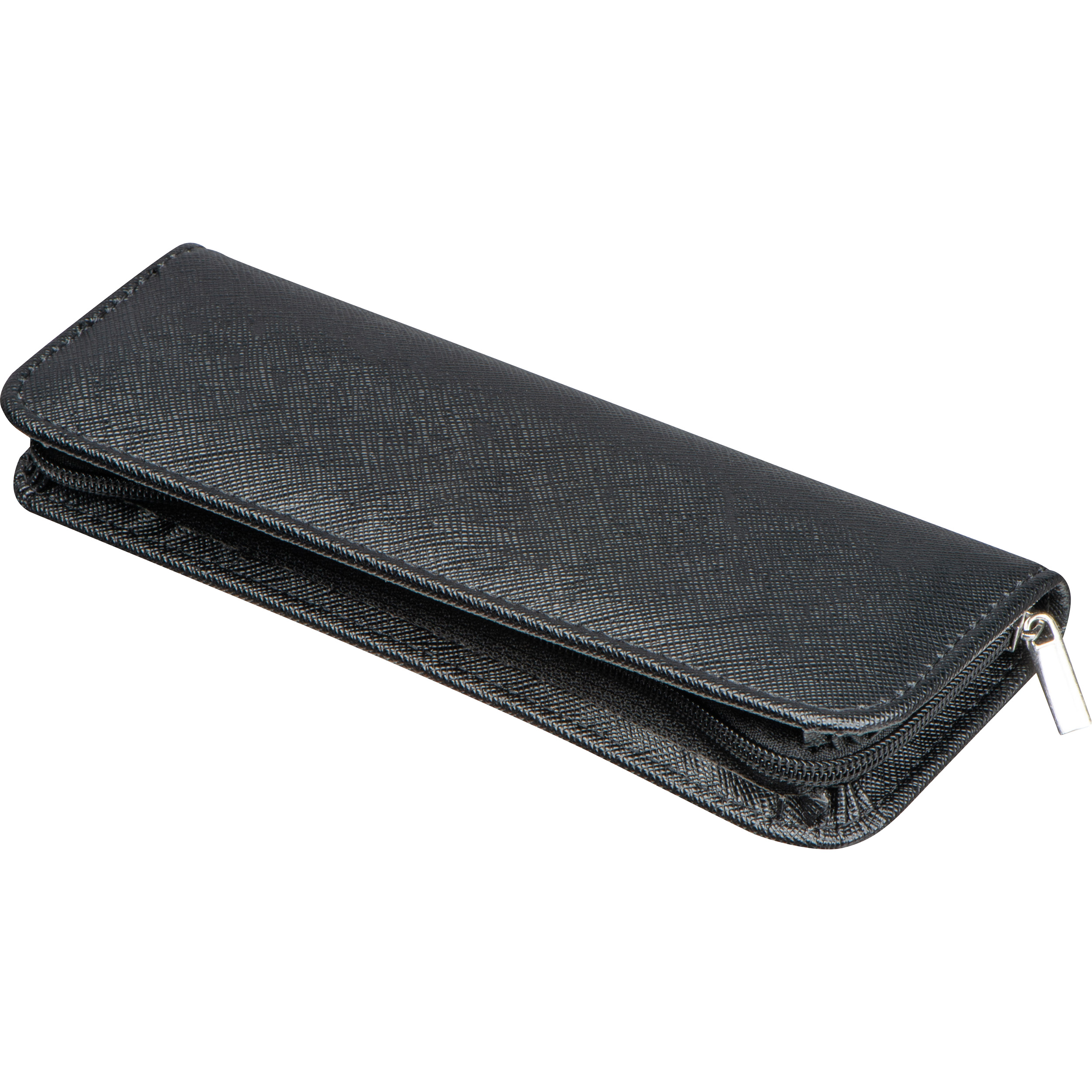 Piórnik na dwa przybory piśmiennicze, wykonany z PU pochodzącego z recyklingu, zamykany na zamek.