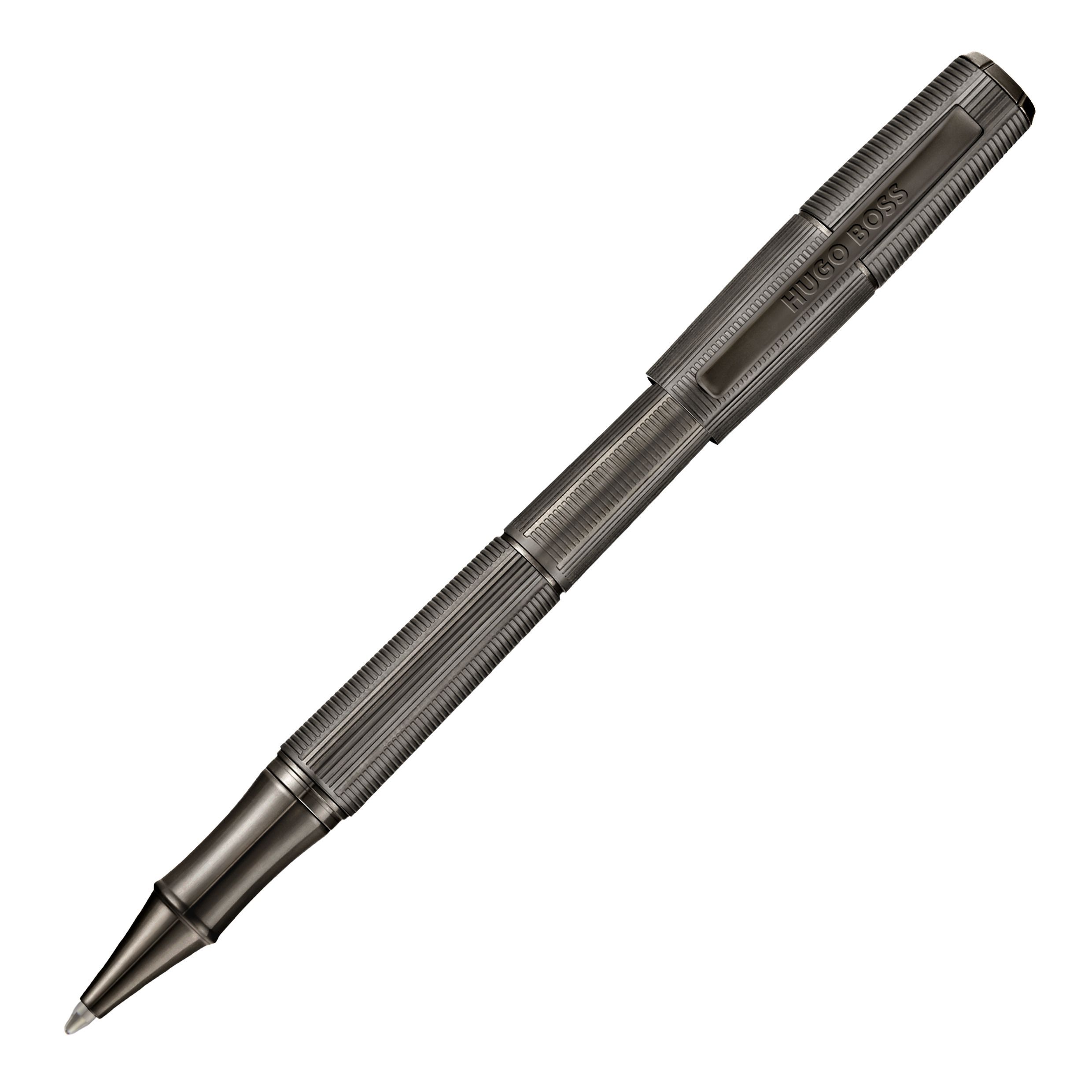 Pióro kulkowe Meridien ukazuje futurystyczną, kanciastą sylwetkę, którą definiuje precyzyjna sekwencja pionowych i poziomych, głęboko grawerowanych pasów. Ta graficzna gra tworzy nowoczesną interpretację ponadczasowego wzoru jodełki, nadając długopisowi wrażenie ruchu i struktury. Minimalistyczne, matowe, brązowe wykończenie podkreśla jego czystą geometrię, tworząc produkt, który emanuje pewnością siebie i nowoczesnością, a jednocześnie ma wyraźny, architektoniczny charakter.