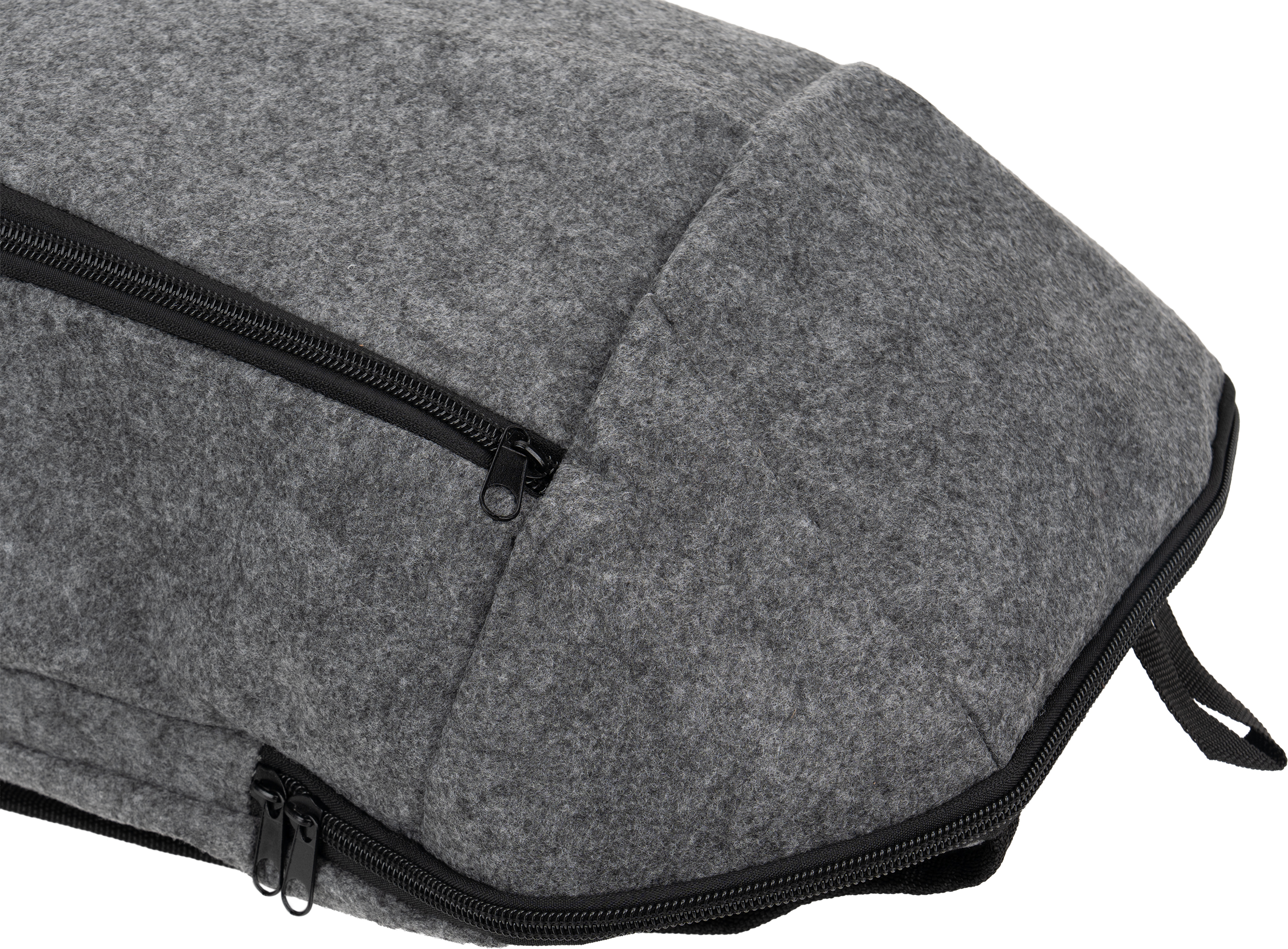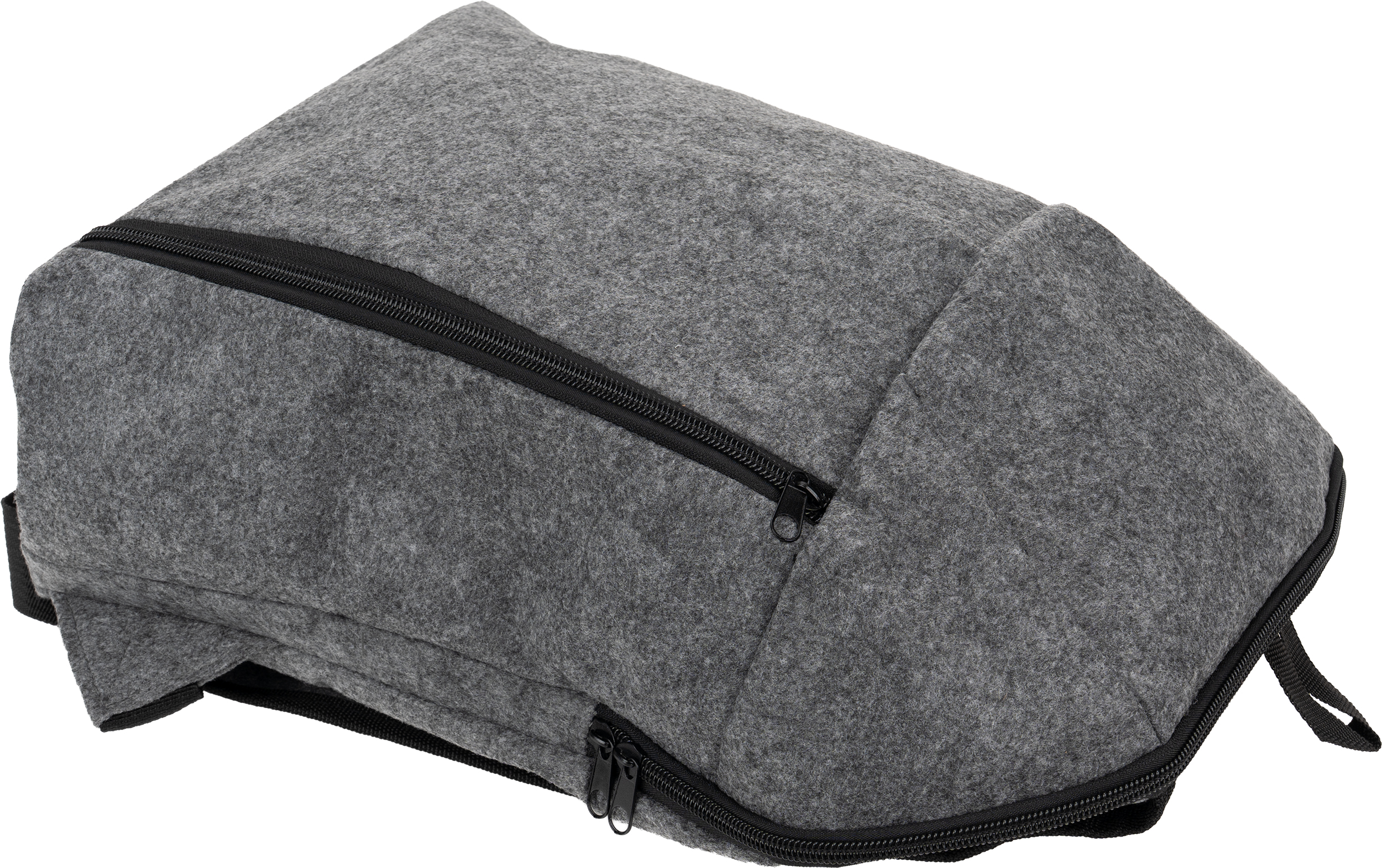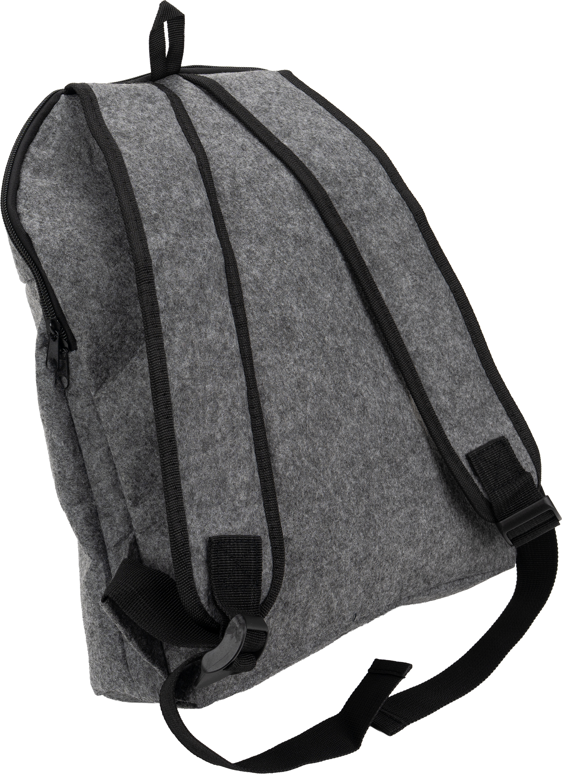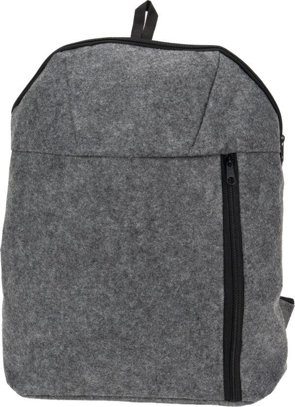 Plecak termiczny z filcu RPET, z główną komorą chłodzącą i małą kieszonką na zamek z przodu.