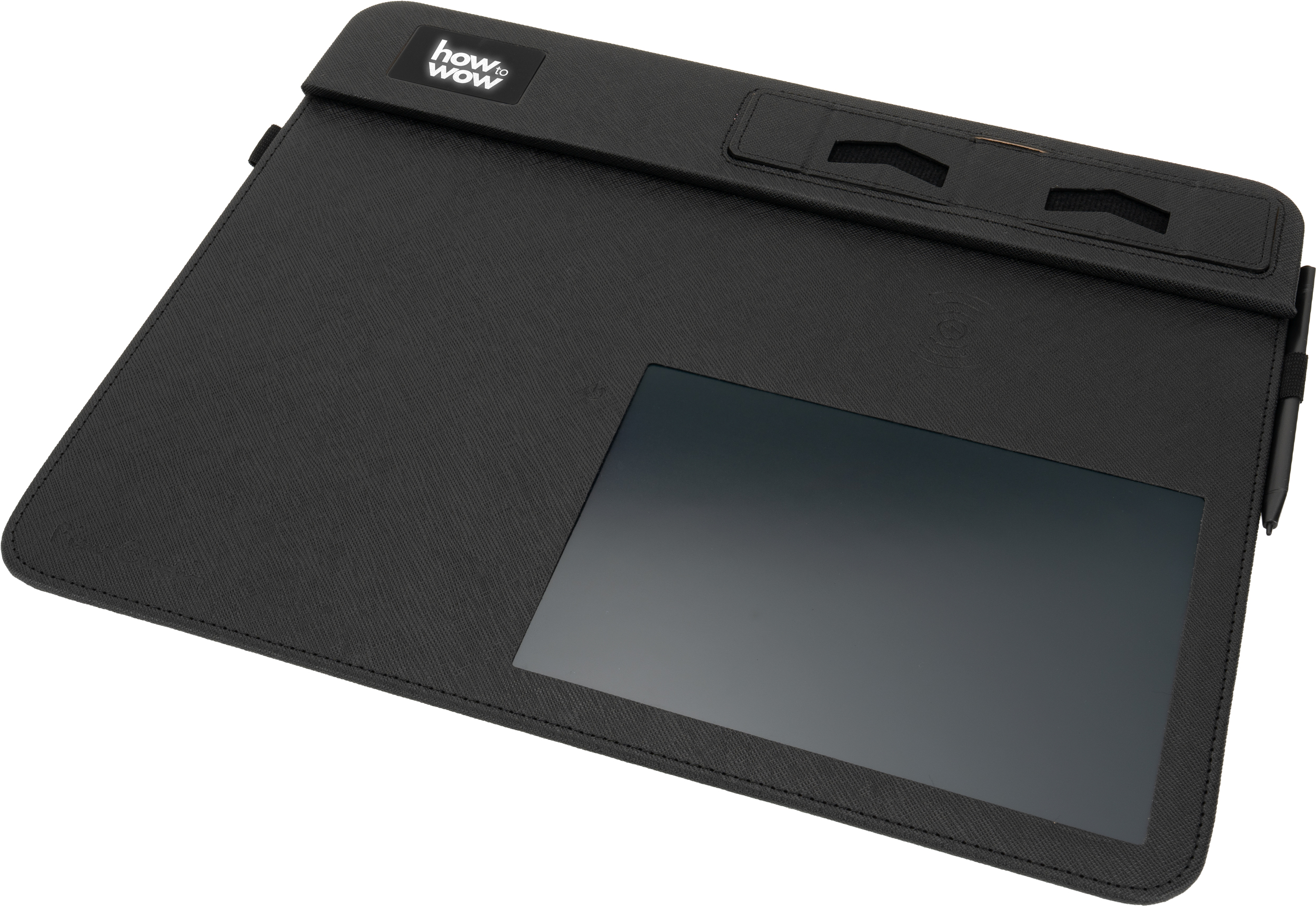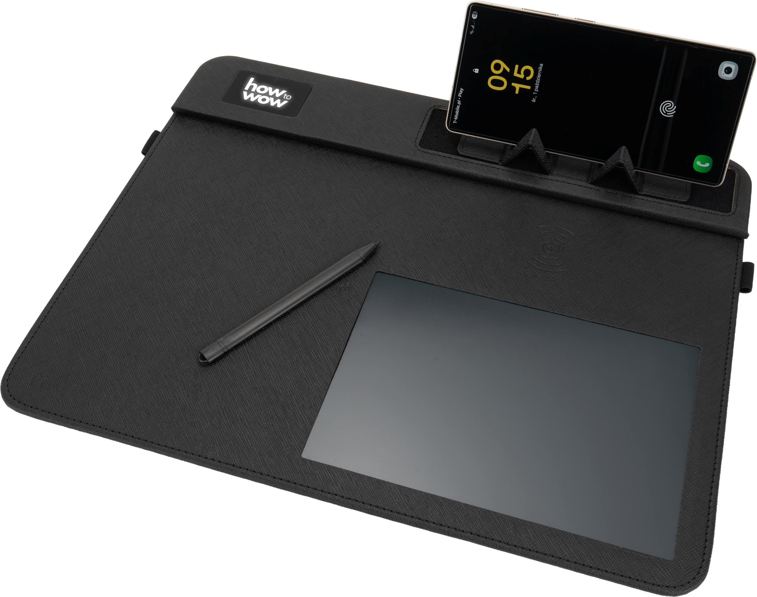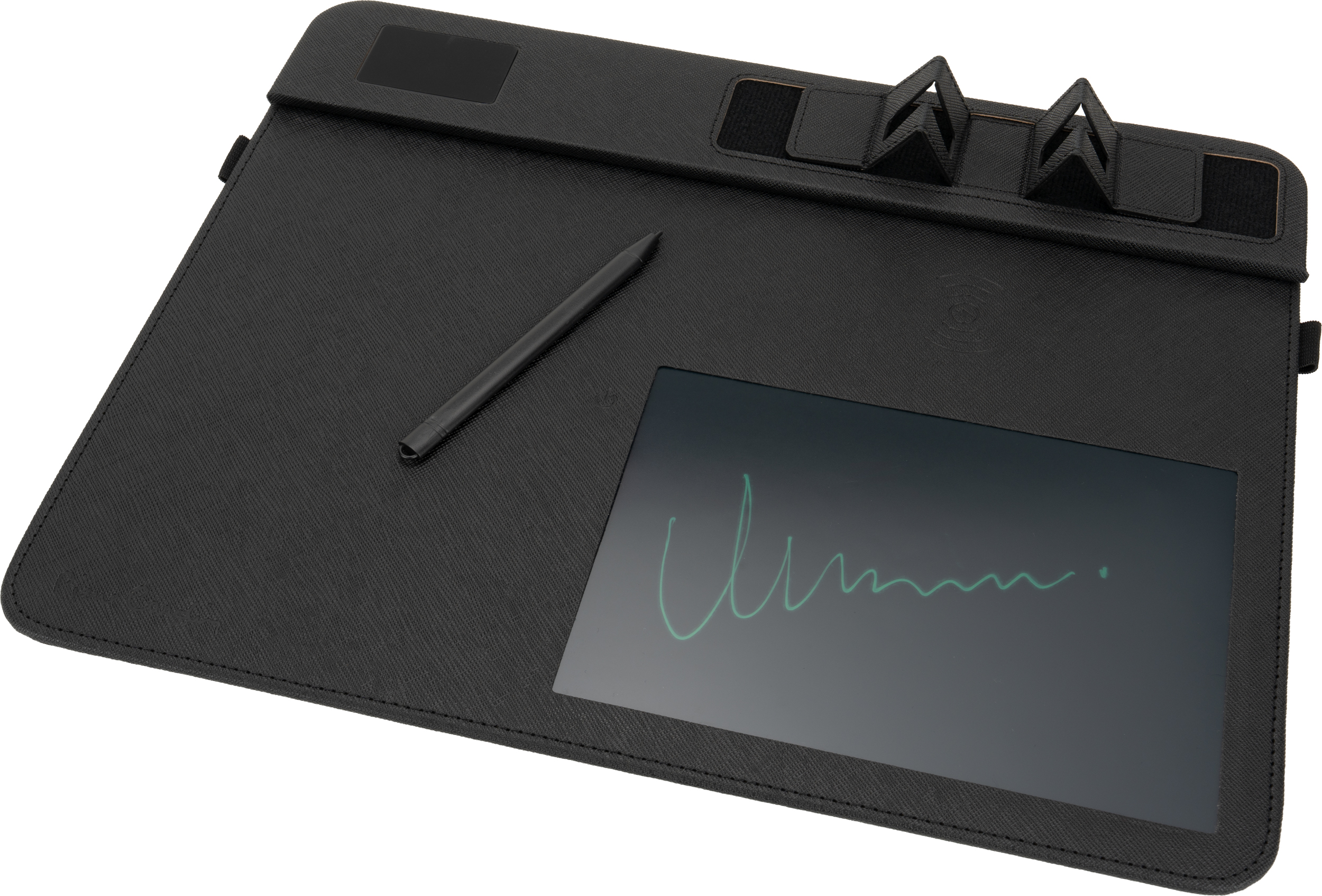 Dodatkowo, podkładka wyposażona jest w praktyczną podstawkę na telefon komórkowy, podkładkę do pisania z rysikiem oraz dwie szlufki na długopisy, co zwiększa jej funkcjonalność.Podkładka posiada także dodatkowe wyjście USB oraz podświetlaną plakietkę, na której można umieścić logo firmy, co czyni ją doskonałym rozwiązaniem reklamowym.Zestaw zawiera kabel USB-C do ładowania, a całość zapakowana jest w eleganckie pudełko prezentowe z certyfikatem autentyczności Pierre Cardin. To idealny prezent dla osób ceniących funkcjonalne i stylowe akcesoria biurowe.
