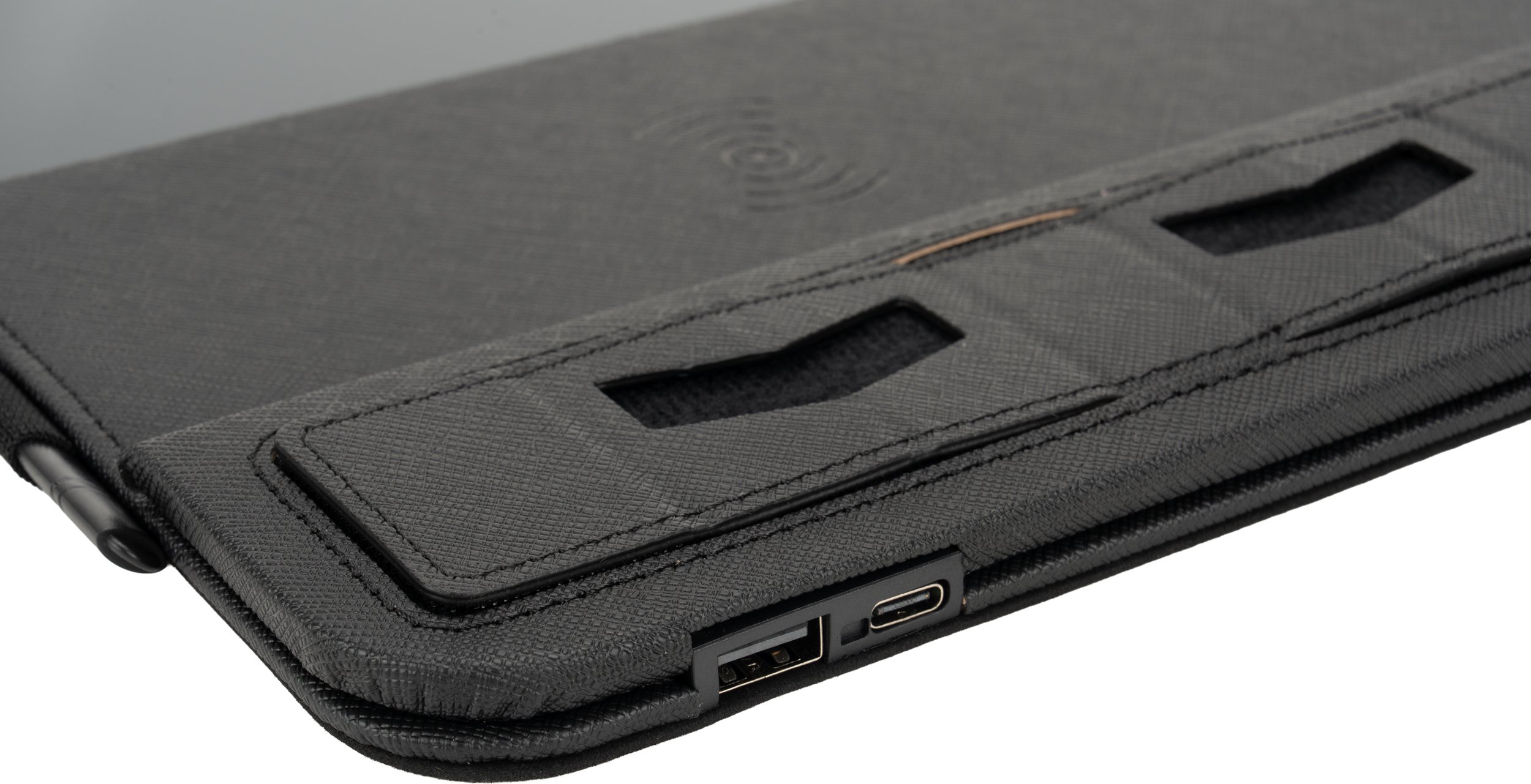 Elegancka podkładka pod mysz TAPIS Pierre Cardin to nowoczesne i funkcjonalne akcesorium biurowe, które łączy elegancję z nowoczesną technologią. Wykonana z wysokiej jakości ekologicznej skóry, jest nie tylko estetyczna, ale także przyjazna dla środowiska.Podkładka zawiera wbudowaną ładowarkę indukcyjną o mocy 10W, obsługującą różne napięcia (5V/2A, 9V/1,67A) i oferującą wyjście 5V/1A oraz 9V/1,1A, co pozwala na szybkie ładowanie urządzeń mobilnych.