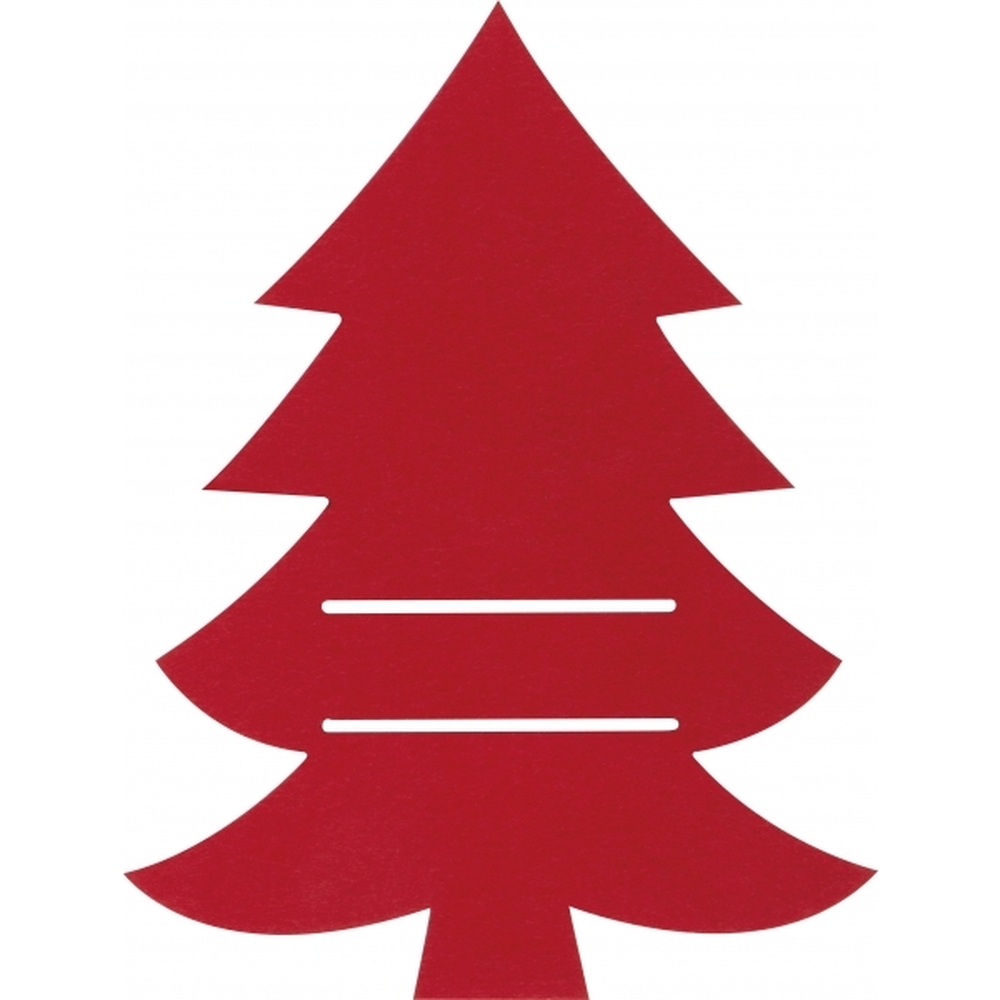 Świąteczne podkładki do sztućców w kształcie choinki, wykonane z czerwonego filcu.