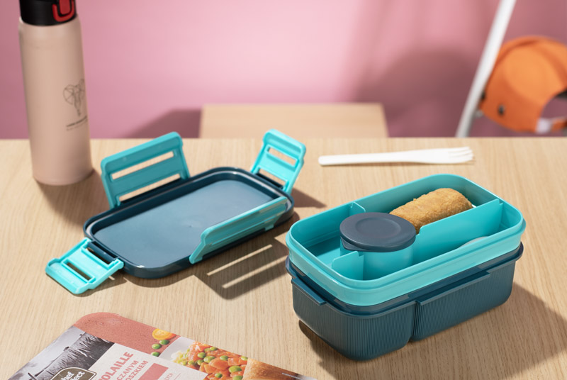 Pojemnik BILO to praktyczny lunchbox z przemyślaną konstrukcją, umożliwiającą wygodne przechowywanie posiłków.