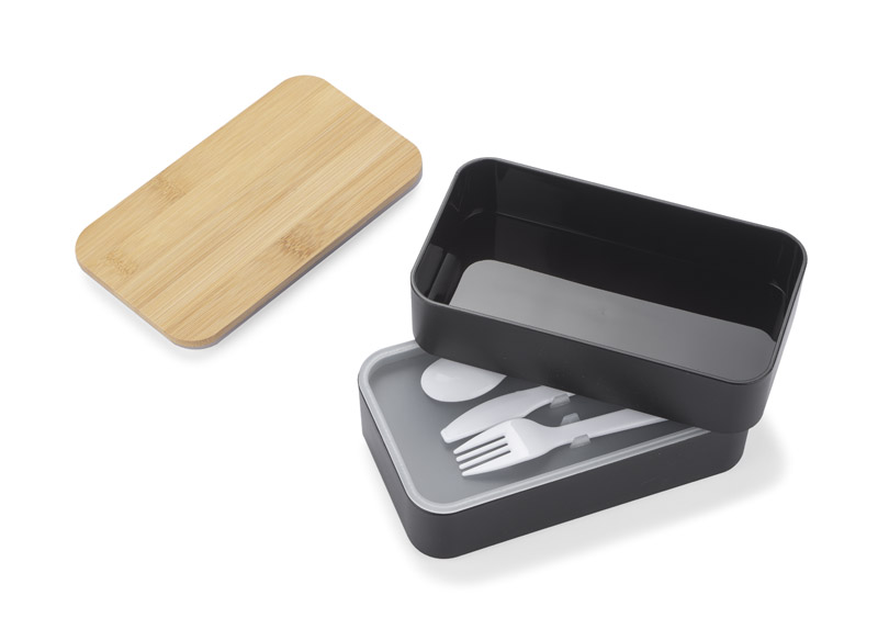 Pojemnik na żywność COUPLE wykonany jest z tworzywa, posiada bambusową przykrywkę i gumkę zapobiegającą przypadkowemu otwarciu.