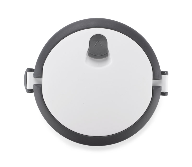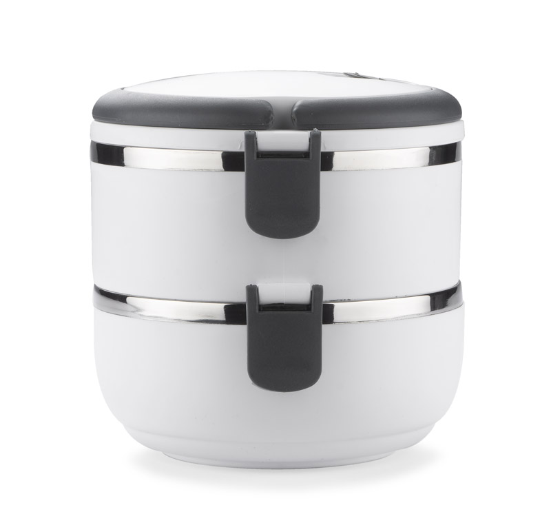 Pojemnik z wnętrzem ze stali nierdzewnej podzielony na dwie komory, które składamy jedną na drugą, co zapewnia poręczne i wygodne przenoszenie dwudaniowych posiłków.