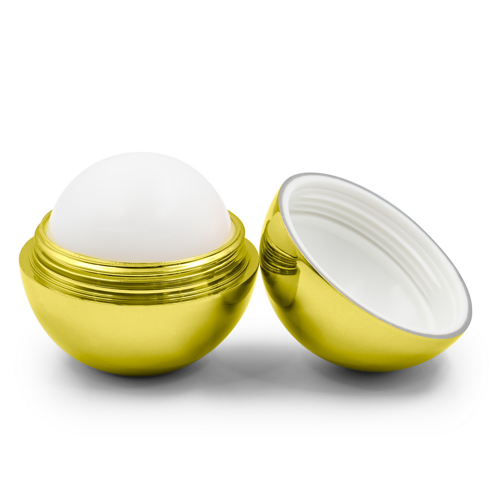 Pomadka ochronna z filtrem przeciwsłonecznym SPF15, który zatrzymuje 93% promieni UVB, w kształcie kuli, waniliowy zapach, posiada metaliczne, błyszczące wykończenie, produkt wykonany z ABS