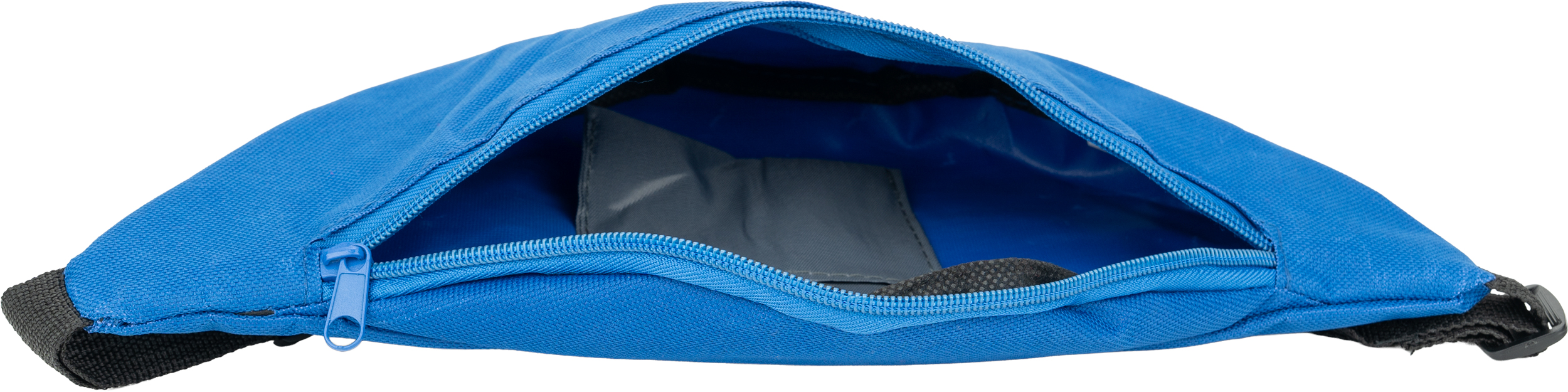 Saszetka na pas wykonana z poliestru 600D. Wyposażona w kieszonkę na zamek błyskawiczny, przegródkę oraz regulowany pasek na ramię. Dostępna w kilku kolorach.