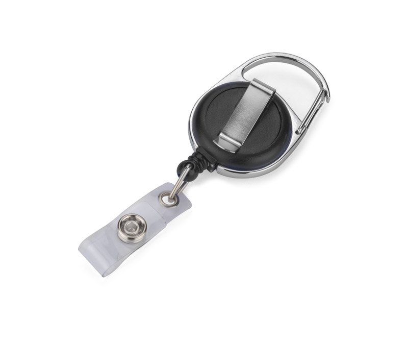 Wykonany z tworzywa skipass z metalowym zaczepem i karabińczykiem z wysuwaną linką, na której zawiesić można identyfikator lub inny dokument.