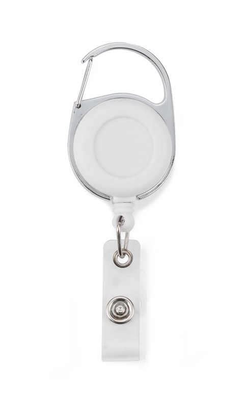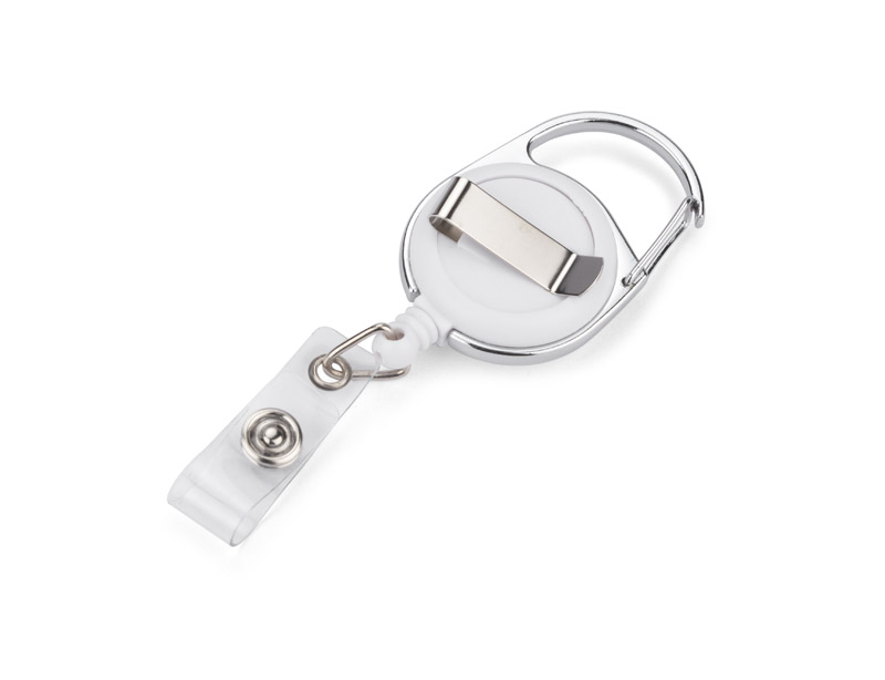 Wykonany z tworzywa skipass z metalowym zaczepem i karabińczykiem z wysuwaną linką, na której zawiesić można identyfikator lub inny dokument.