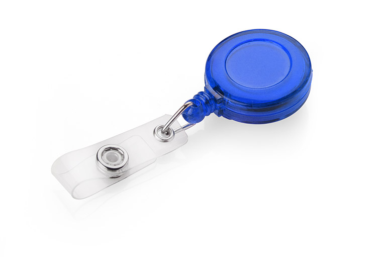 Skipass wykonany z tworzywa, z metalowym zaczepem, wysuwaną linką na której można zawiesić identyfikator lub inny dokument.
