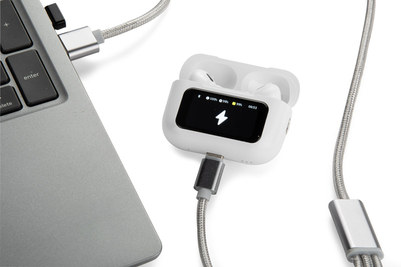 Słuchawki bezprzewodowe SENSIFY o nowoczesny gadżet premium, który łączy funkcjonalność słuchawek dousznych z zaawansowanym etui wyposażonym w kolorowy, dotykowy wyświetlacz.