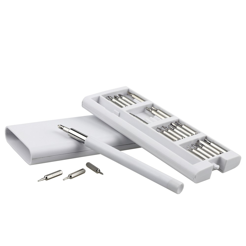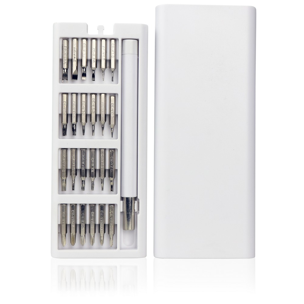 Śrubokręt, zestaw 24 końcówek w magnetycznym pudełku z otwarciem typu push open/close, z magnesem w rączce do przytrzymania końcówek