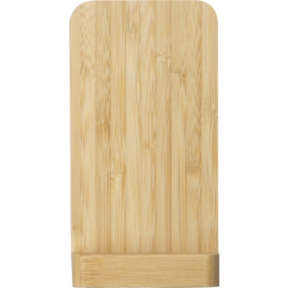 Ładowarka bezprzewodowa z uchwytem na smartfona wykonana z bambusa.
