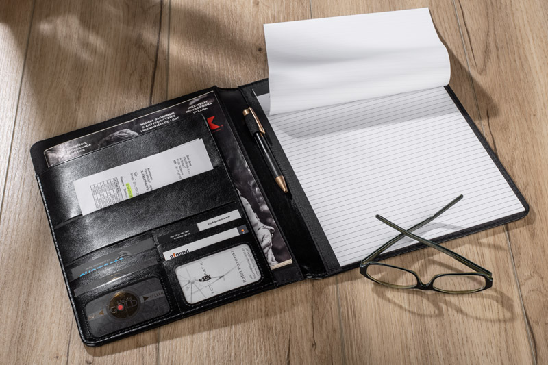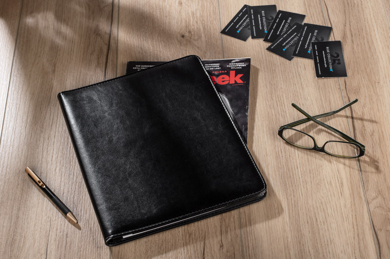 Elegancka, klasyczna teczka wykonana z materiału skóropodobnego (PU).