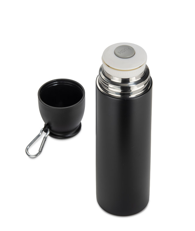 Termos FAZARI 500 ml wykonany jest ze stali nierdzewnej, dzięki czemu skutecznie utrzymuje temperaturę napojów do 8 godzin. Wyposażony w wygodny mechanizm otwierania typu „naciśnij”, który ułatwia korzystanie z termosu w podróży czy w samochodzie. Klasyczna, gwintowana zakrętka pełni funkcję kubeczka, a dołączony karabińczyk umożliwia przypięcie termosu do torby lub plecaka. Smukła konstrukcja typu slim sprawia, że z łatwością mieści się w uchwytach samochodowych i bocznych kieszeniach plecaków.