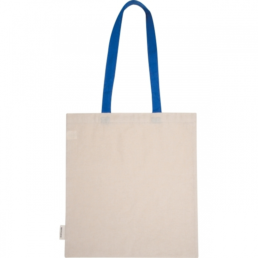 Torba bawełniana z dwoma długimi uchwytami wykonana z 75% recyklingowej bawełny i 25% recyklingowego PET.