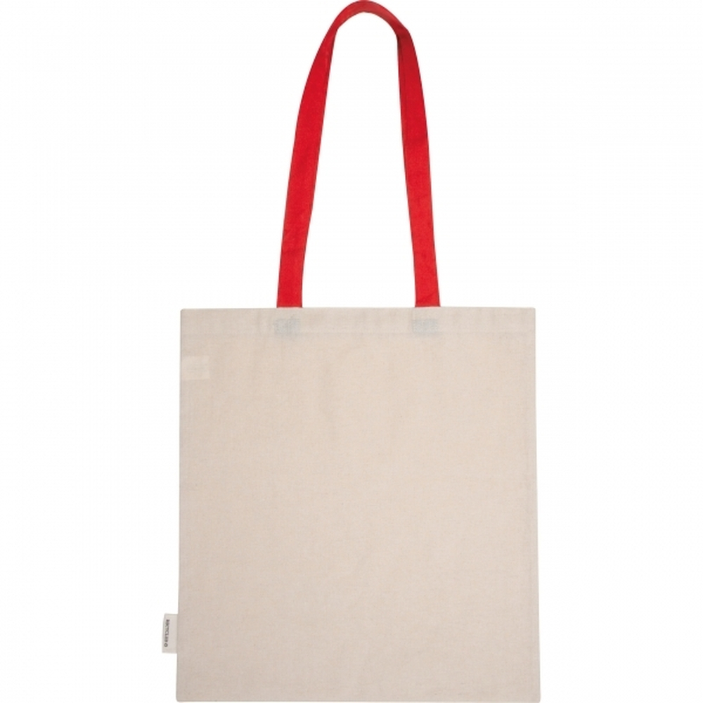 Torba bawełniana z dwoma długimi uchwytami wykonana z 75% recyklingowej bawełny i 25% recyklingowego PET.
