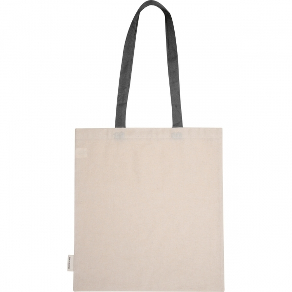 Torba bawełniana z dwoma długimi uchwytami wykonana z 75% recyklingowej bawełny i 25% recyklingowego PET. Gramatura 140g/m2.