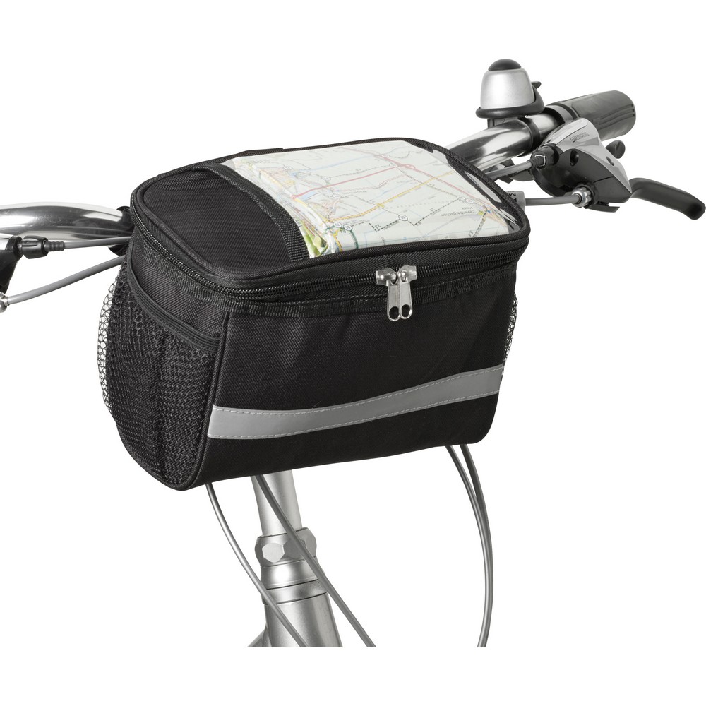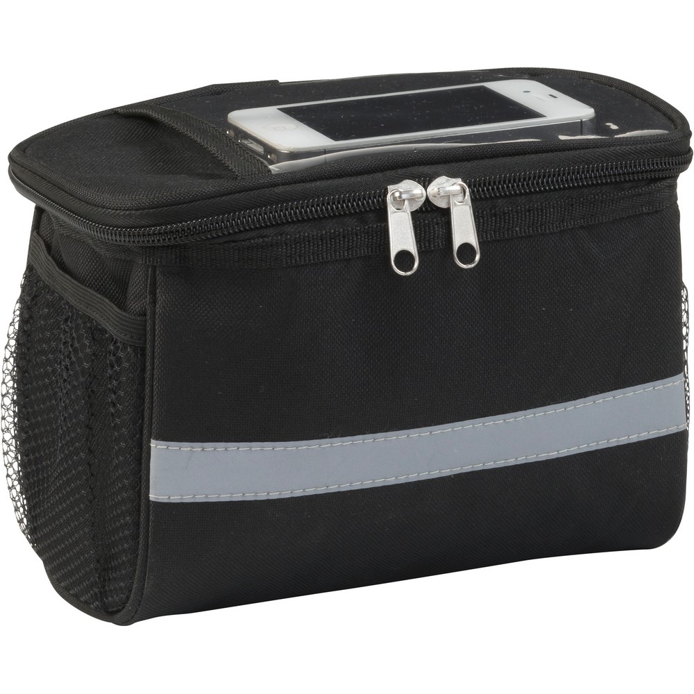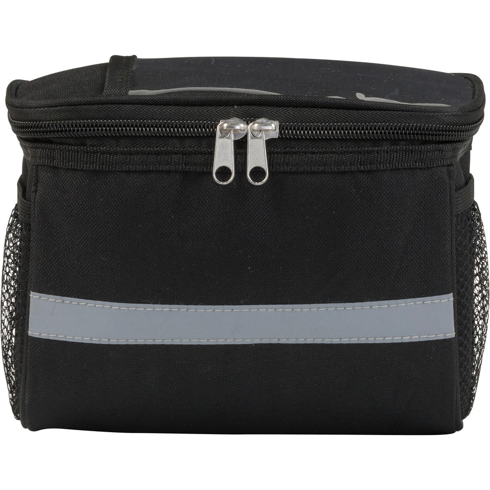 Rowerowa torba termoizolacyjna na zamek, na górze kieszeń PVC, połyskliwy pasek, siateczkowe kieszenie po bokach