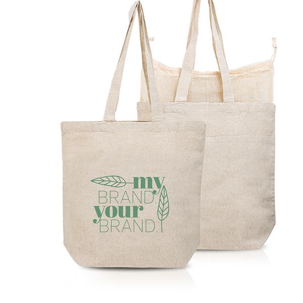 Torba z bawełny z recyklingu 190g z sitkowym ściagnym workiem
