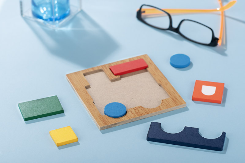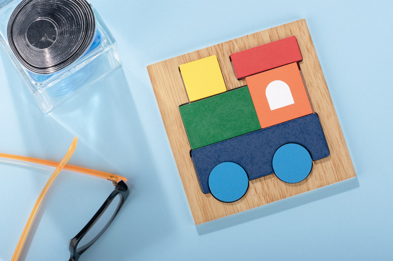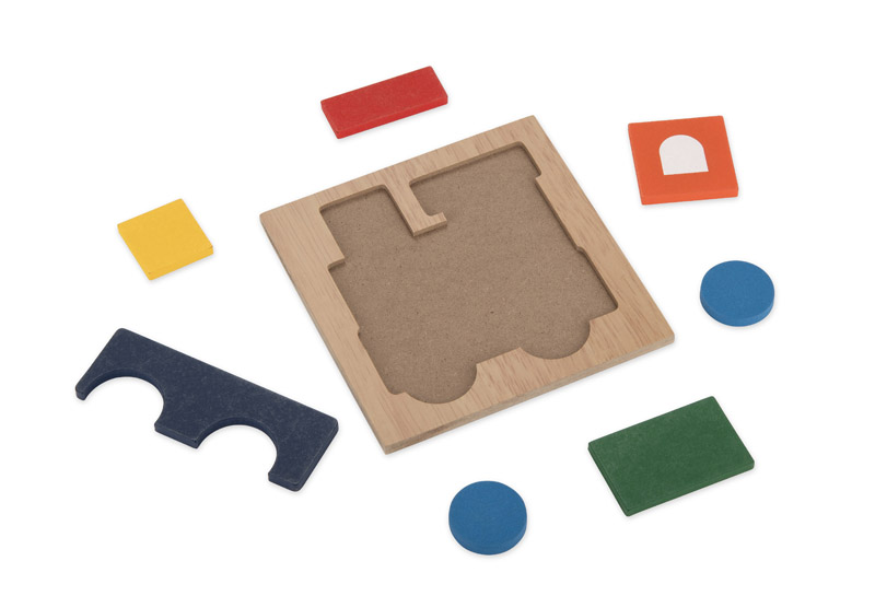 Puzzle LOKO to kolorowa układanka wykonana z drewna, która przedstawia motyw lokomotywy.