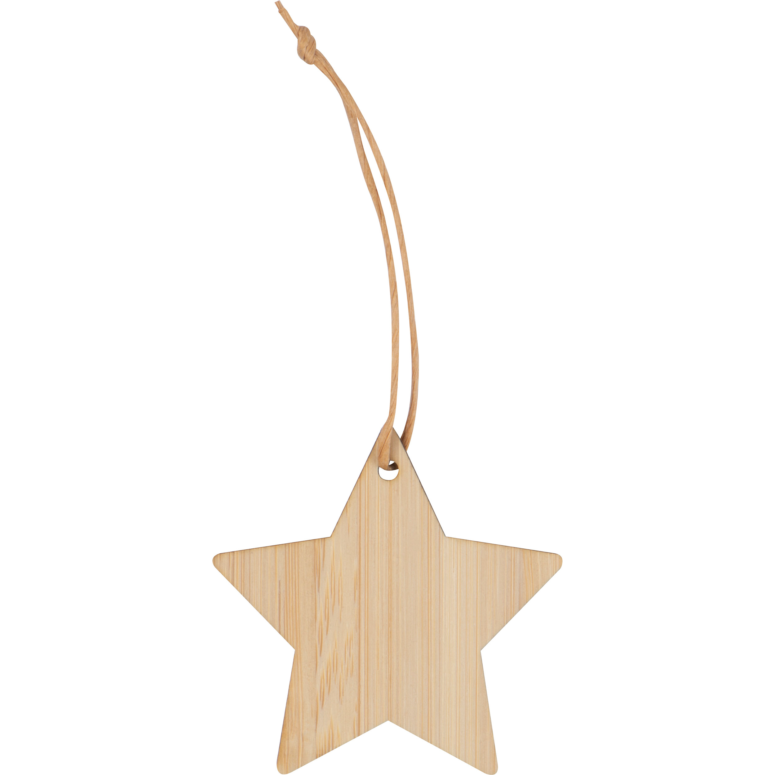 Drewniana zawieszka na choinkę w kształcie gwiazdki.