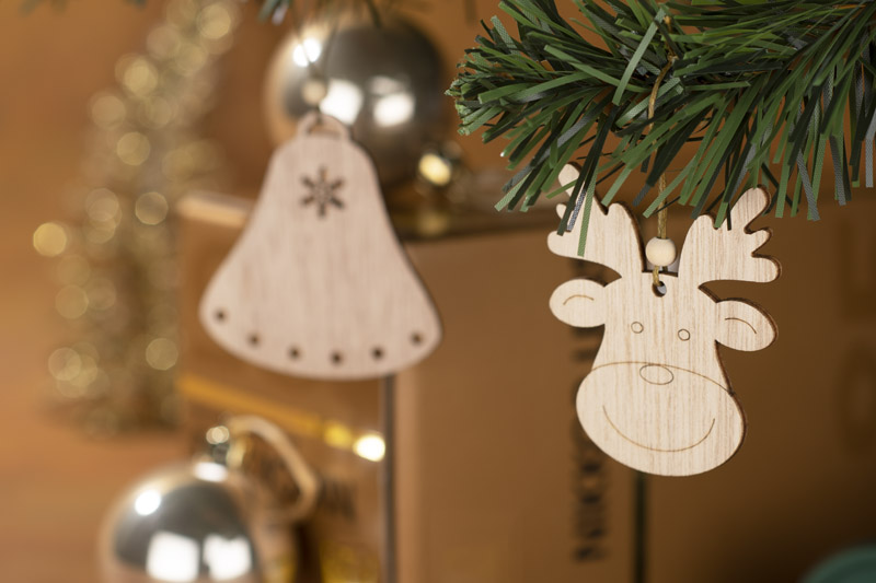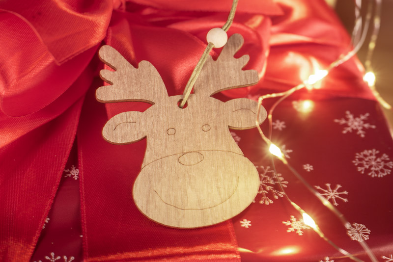 Zawieszka drewniana RENS może stanowić element dekoracyjny w dowolnym miejscu: na choince, w oknie lub jako element ozdobny przy pakowaniu prezentów.