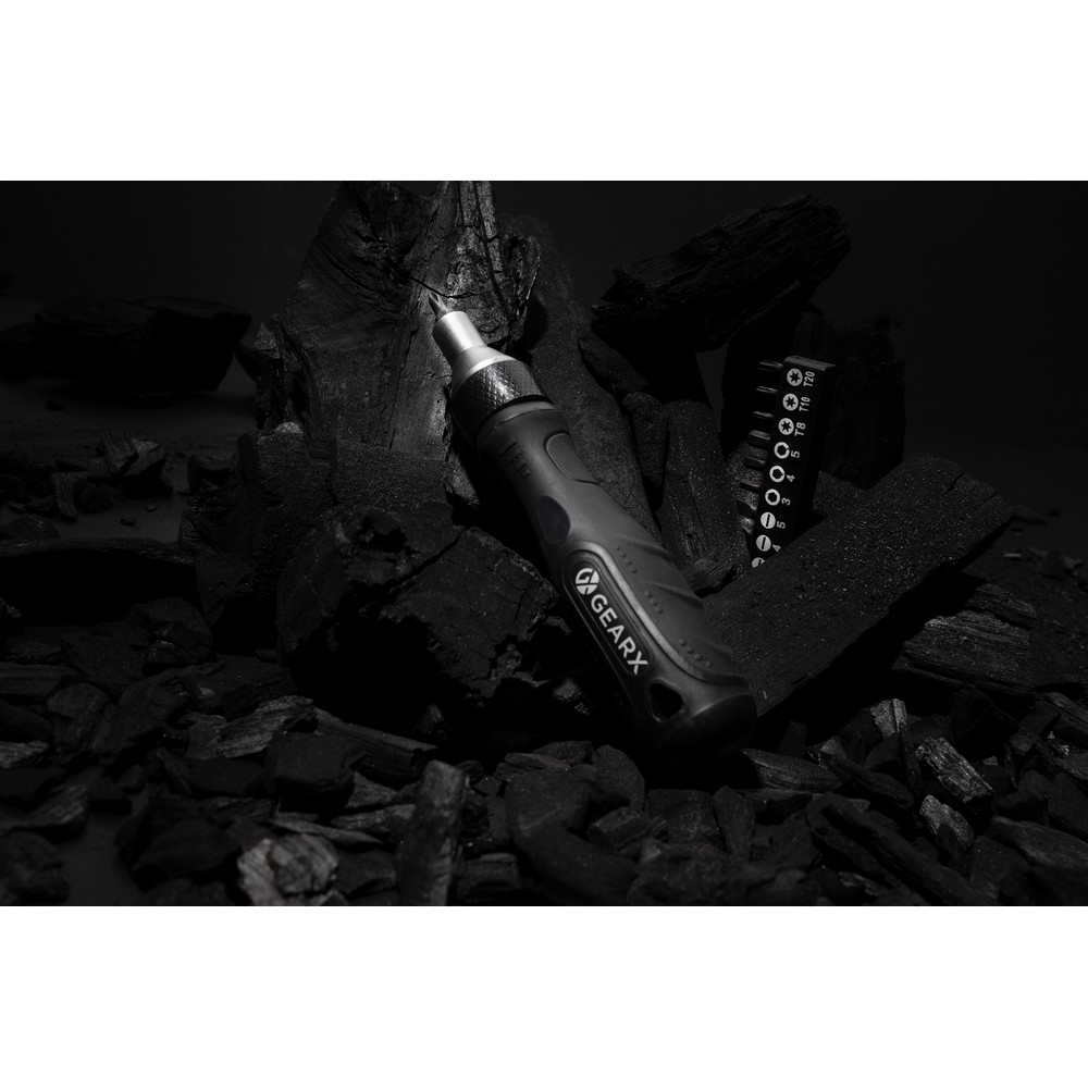 Zestaw narzędzi, w komplecie wkrętak i oraz 12 bitów, wbudowany silny magnes, wykonany ze stali stopowej S2, w pudełku podarunkowym, ślad węglowy produktu: 1,31 kg CO2