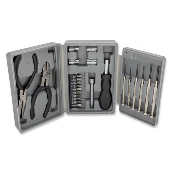 To rozwiązanie, które sprawdzi się zarówno w małych warsztatach, jak i w domowych skrzynkach narzędziowych, dbając o to, by wszystkie elementy były bezpiecznie przechowywane.Zestaw narzędzi to wielofunkcyjny komplet, który spełni wymagania zarówno amatorów, jak i bardziej doświadczonych użytkowników. Doskonały do codziennych napraw, drobnych modyfikacji czy prac remontowych, a także do wykonywania prostych prac mechanicznych, gdzie precyzyjne narzędzia są niezbędne.Wysoka jakość stali, z której wykonane są narzędzia, gwarantuje ich długowieczność oraz niezawodność w codziennym użytkowaniu.Zestaw ten jest niezbędnym akcesorium dla każdego, kto ceni sobie wszechstronność, trwałość i porządek w swoim warsztacie. Dzięki skompletowaniu narzędzi w jednym pudełku, użytkownik ma pewność, że wszystkie akcesoria są łatwe do zlokalizowania i zawsze gotowe do użycia, co zwiększa komfort pracy.Zestaw narzędzi to produkt, który łączy praktyczność, trwałość oraz komfort użytkowania, a jego kompaktowa forma sprawia, że jest wygodny w przechowywaniu i łatwy do zabrania w podróż.