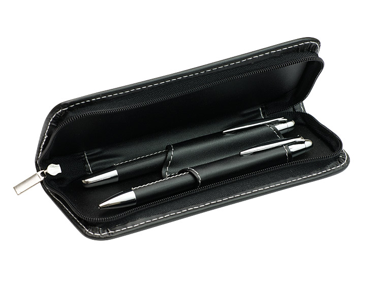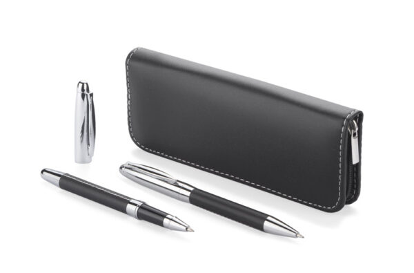 Komplet piśmienniczy Elegance: długopis i pióro kulkowe w etui z materiału skóropodobnego (PU).