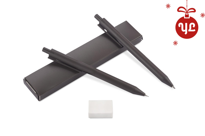 Wymiary produktu: 141 x ⌀ 10 mm (długopis); 142 x ⌀ 10 (ołówek); 165 x 34 x 13 mm (etui), 160 x 30 x 0,6 mm (linijka)