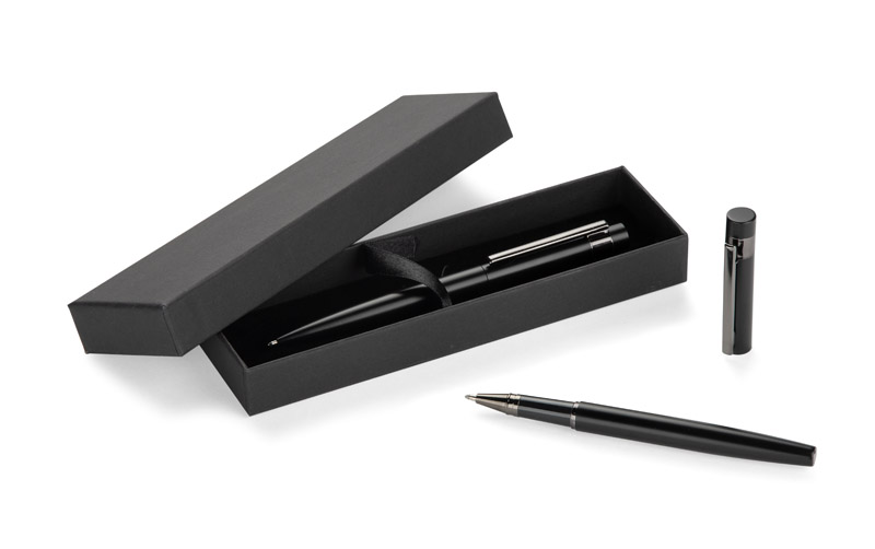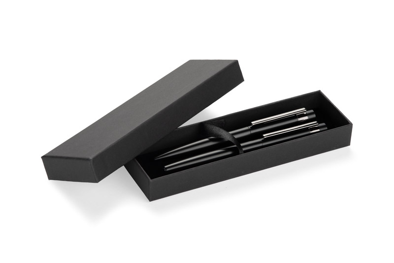 Zestaw piśmienniczy ZILE w etui zawiera metalowy długopis i pióro kulkowe o nowoczesnym wykończeniu.