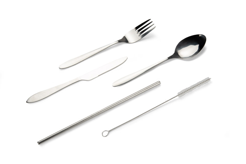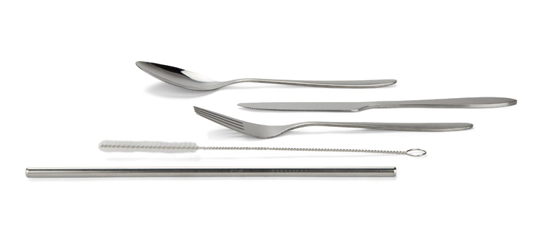 Zestaw sztućców ZUNA to praktyczny komplet wykonany z metalu, idealny do użytku w podróży, pracy lub na lunch poza domem.